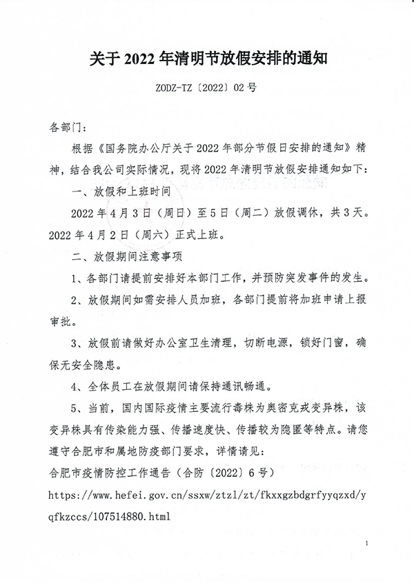 赢博在线(中国)唯一官方网站创新赢博在线(中国)唯一官方网站2022年清明节放假安排的通知