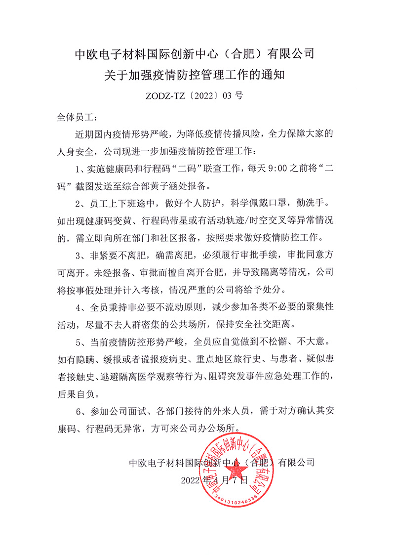 赢博在线(中国)唯一官方网站(合肥)有限公司赢博在线(中国)唯一官方网站加强疫情防控管理工作的通知