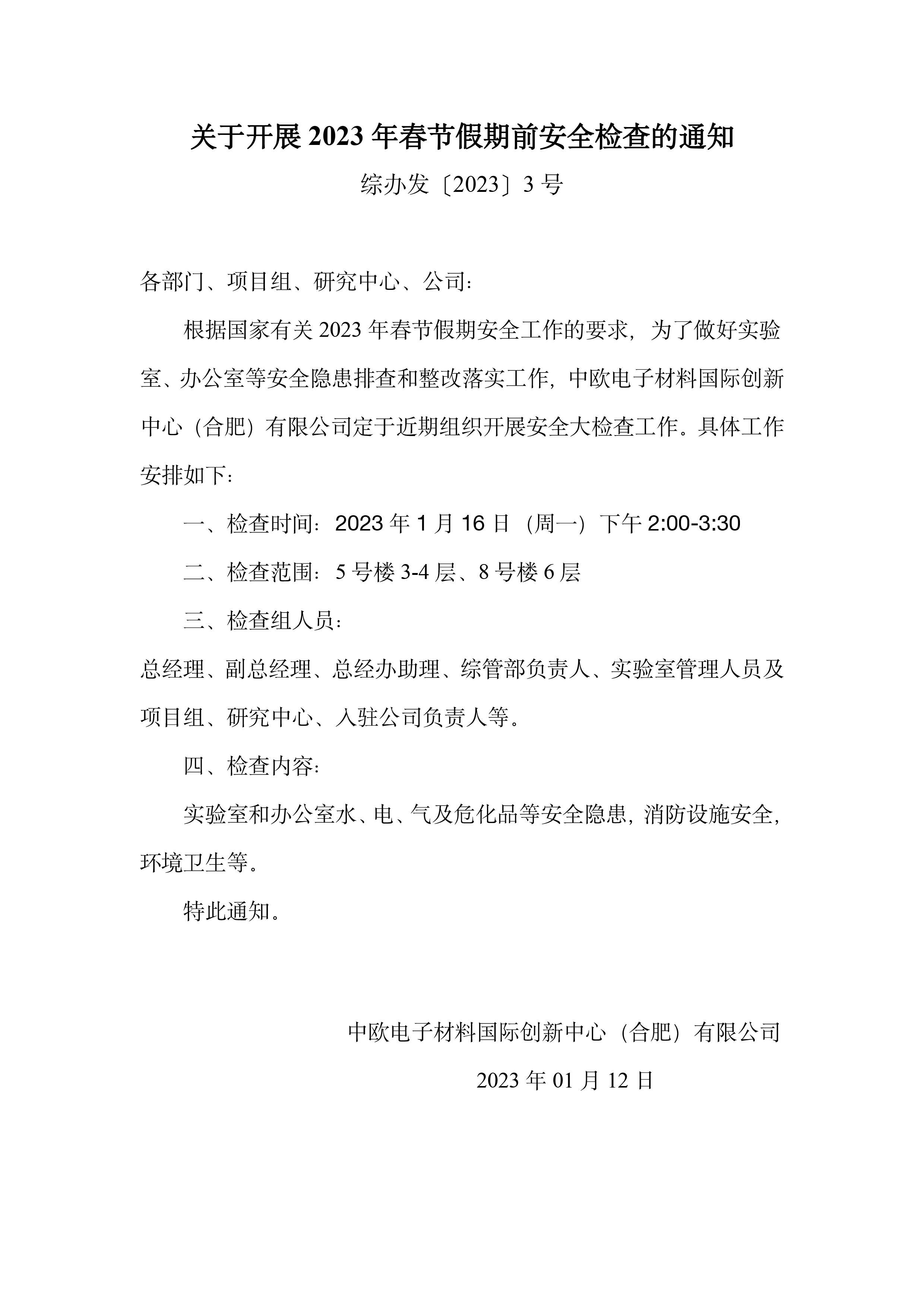 赢博在线(中国)唯一官方网站开展2023年春节假期前安全检查的通知