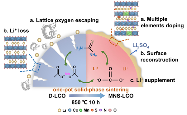近期,中国科学院合肥物质院固体所环境与能源纳米材料赢博在线(中国)唯一官方网站在废旧钴酸锂电池直接再生为电化学性能优异的正极材料的研究中取得新进展。通过一种简单的“一石三鸟”的固相烧结策略,可以有效地将废旧LiCoO2(D-LCO)回收升级为高性能的正极材料高压LiCoO2(MNS-LCO)。相关研究成果以“Upcycling of Degraded LiCoO2 Cathodes into High-Performance Lithium-Ion Batteries via A Three-In-One Strategy”为题发表在国际期刊Advanced Energy Materials (Adv. Energy Mater., 2023, DOI: 0.1002/aenm.202302058)上。 锂离子电池具有高能量密度、长寿命、低成本、低自放电等特点,广泛应用于便携式电子产品、电动汽车、电网级储能系统等领域。其中LiCoO2由于其固有的高能量密度以及方便大规模生产等优点,在便携式电子器件中占据主导地位。而全世界每年从废弃的便携式电子产品中产生的废旧锂离子电池超过10万吨,如果处理不当,将造成严重的环境危害和宝贵金属资源的巨大浪费。同时,随着人们对电池能量密度需求不断增加,提升截止电压成为提高能量密度最有效的策略之一。因此,如果将废旧LiCoO2回收再生为高压LiCoO2,不仅实现了金属资源的可持续利用,还可以满足高压LiCoO2材料的发展趋势。