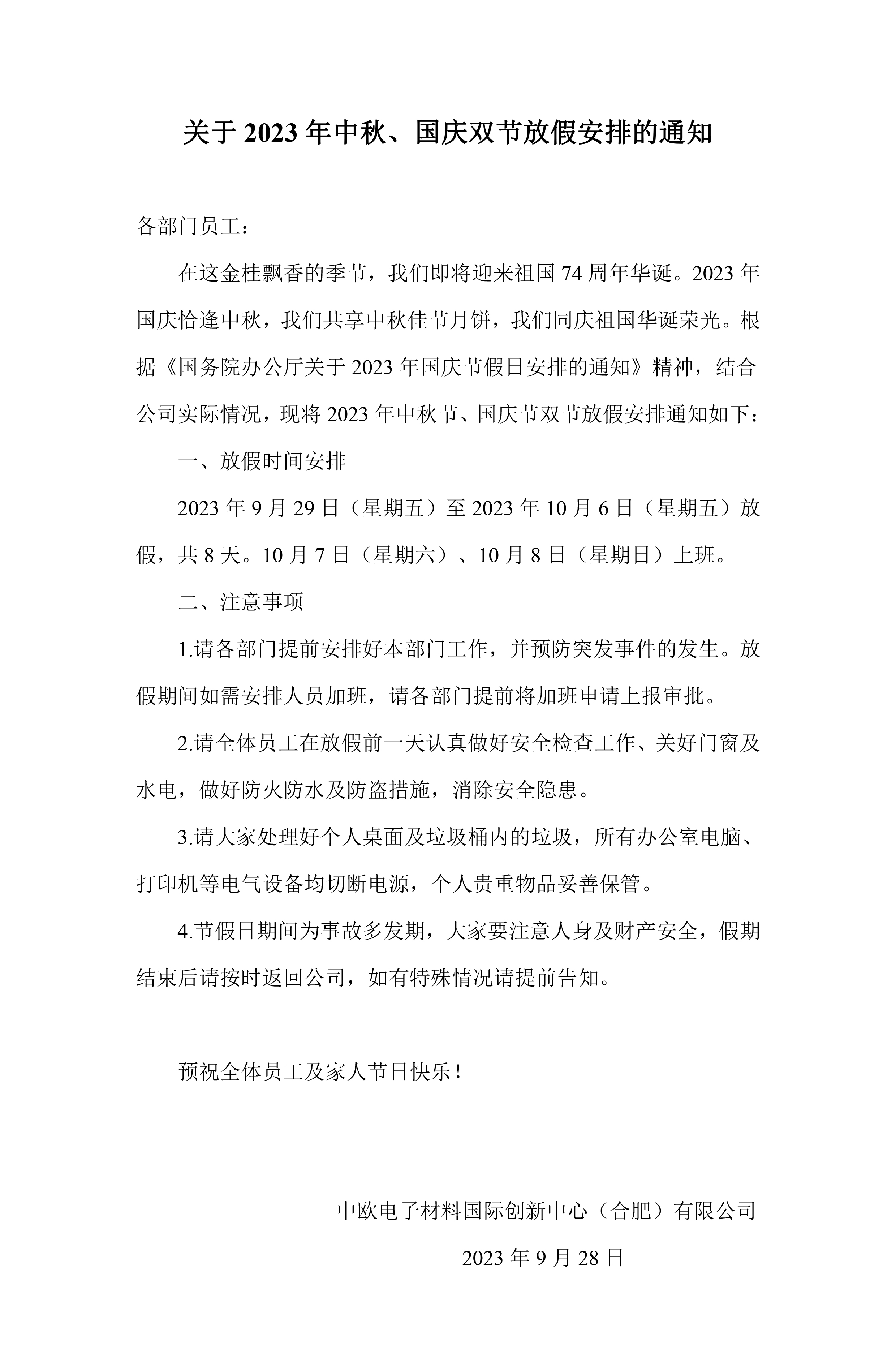 赢博在线(中国)唯一官方网站中秋、国庆双节放假安排的通知