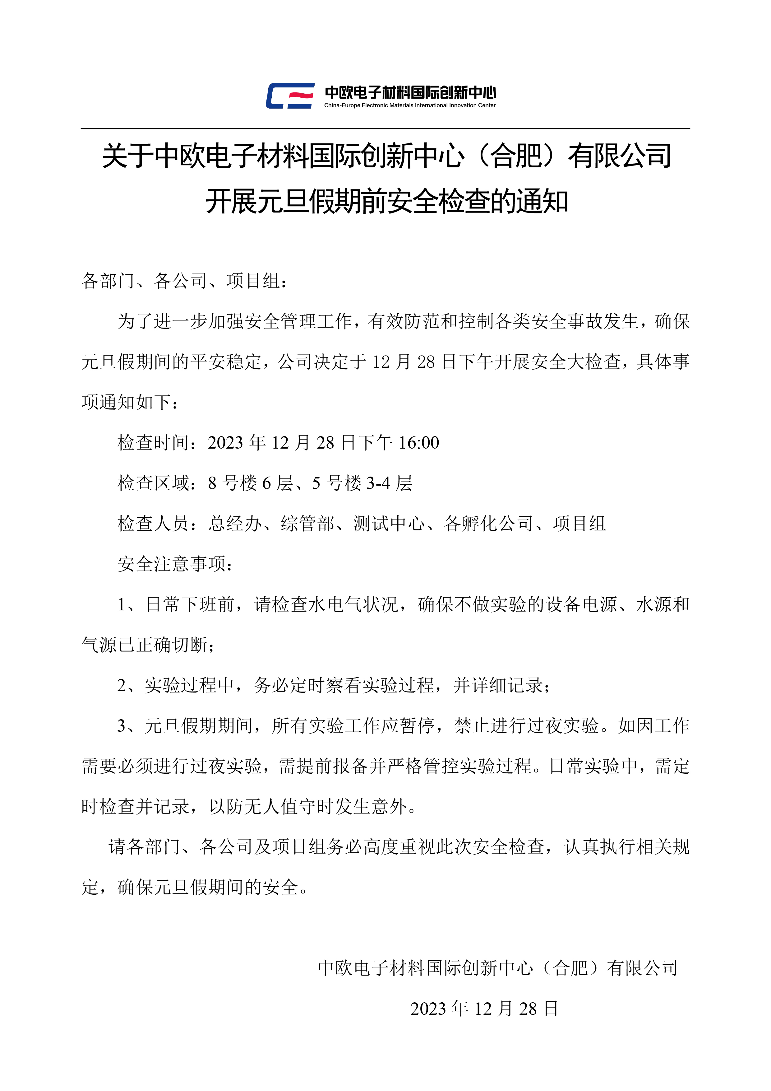 赢博在线(中国)唯一官方网站开展2024年春节前安全大检查的通知
