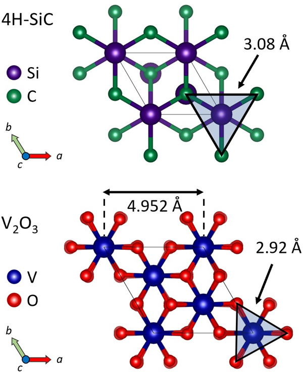 V2O3作为典型的强电子关联氧化物,在化学掺杂、压力和温度等作用下发生从顺磁金属(PM)相到顺磁绝缘体(PI)相和反铁磁绝缘体(AFI)相之间的转变,同时伴随着电学、磁性和光学等物性的显著改变,这种独特的物理特性使其在光电开关、智能窗口、信息存储等领域具有广阔的应用前景。因此,V2O3金属-绝缘体相变一直是凝聚态物理和材料科学的研究热点。然而,难以在半导体衬底上实现V2O3薄膜的外延生长极大限制了相关的应用研究。