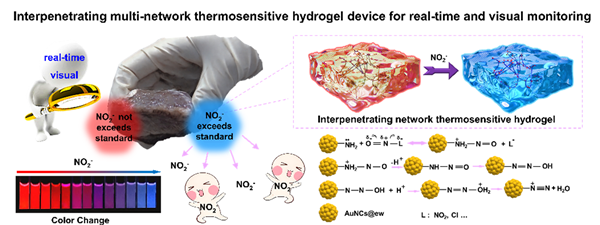 近期,中国科学院合肥物质科学研究院固体物理研究所能源材料与器件制造研究部蒋长龙研究员团队在实时同步可视化检测亚硝酸盐方面取得新进展。相关研究成果以“Multi-deformable interpenetrating network thermosensitive hydrogel f luorescent device for real-time and visual detection of nitrite”为题发表在Journal of Hazardous Materials (J. Hazard. Mater., 2024, 478,135471)上。
