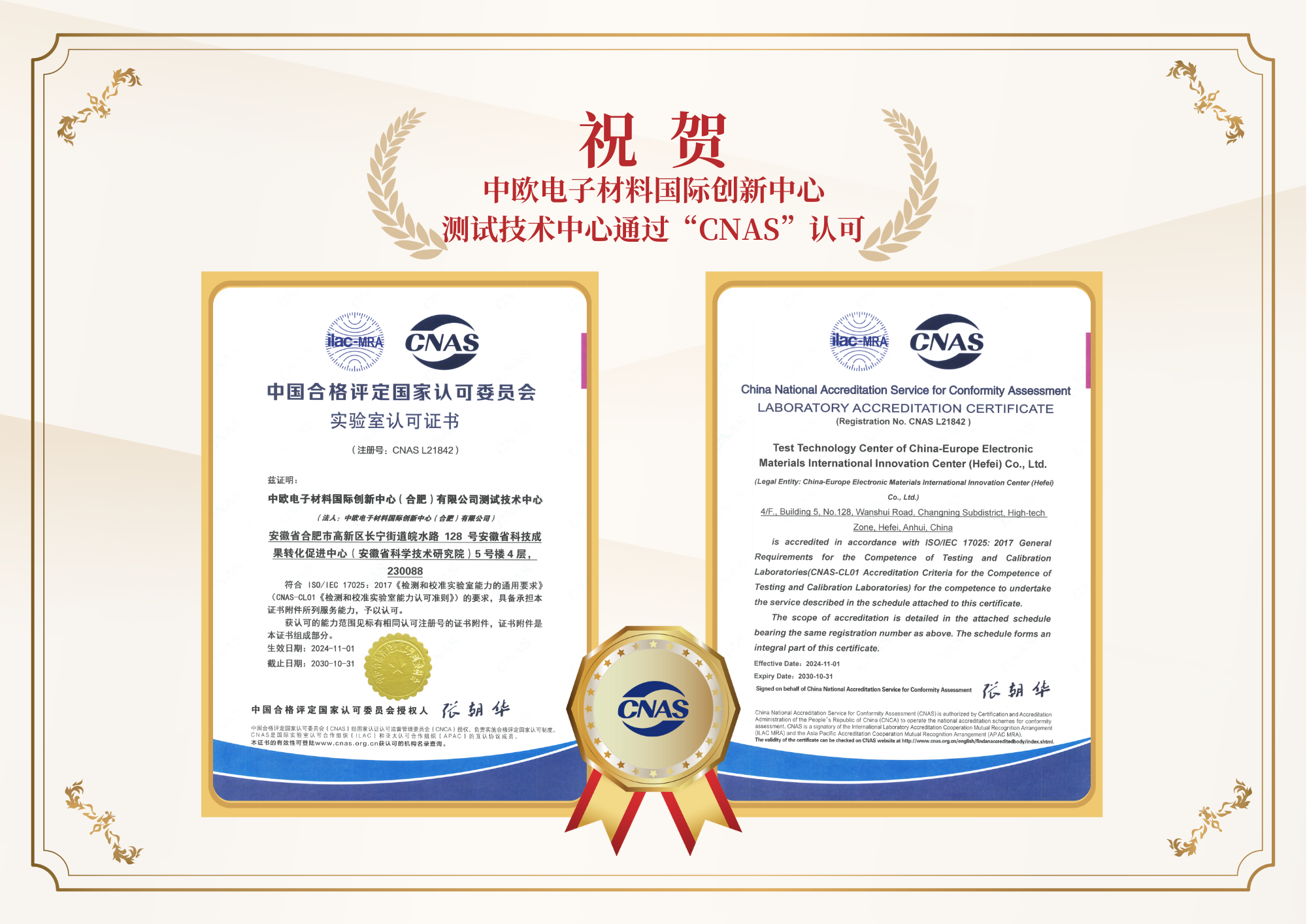 2024年11月赢博在线(中国)唯一官方网站(合肥)有限公司测试技术赢博在线(中国)唯一官方网站(以下简称“测试技术赢博在线(中国)唯一官方网站”)顺利通过了中国合格评定国家认可委员会资质评审及合格评定,成功获得CNAS实验室认可证书。