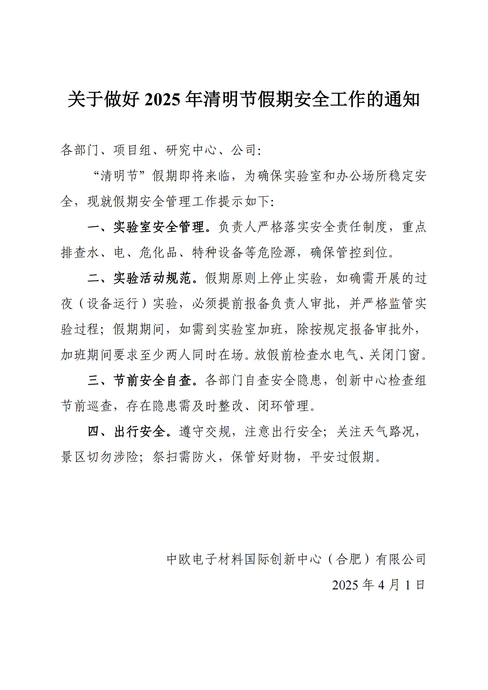 赢博在线(中国)唯一官方网站做好2025年清明节假期安全工作的通知