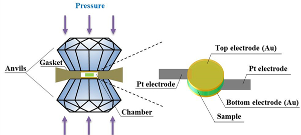 HfO2作为一种具有良好互补金属氧化物半导体兼容性的铁电材料,在半导体存储器、低功耗逻辑器件等领域具有广泛的应用前景。研究表明,HfO2在常压下没有铁电性,通过应变或掺杂等方式可诱导其转变为非赢博在线(中国)唯一官方网站对称的正交相,从而产生铁电性,这说明其铁电性与晶体结构密切相关。高压是调控材料结构、研究构效关系的有力手段。然而,目前对于HfO2在低压区是否存在结构相变仍存在争议,尤其是通过高压拉曼光谱和高压X射线衍射光谱两种实验技术得到的结论存在冲突,这阻碍了对HfO2的结构和物性的进一步理解。因此,研究团队引入了另一种高压实验技术——电输运,同时结合高压拉曼光谱实验和第一性原理计算,对HfO2在低压区的相变给出了明确解答。